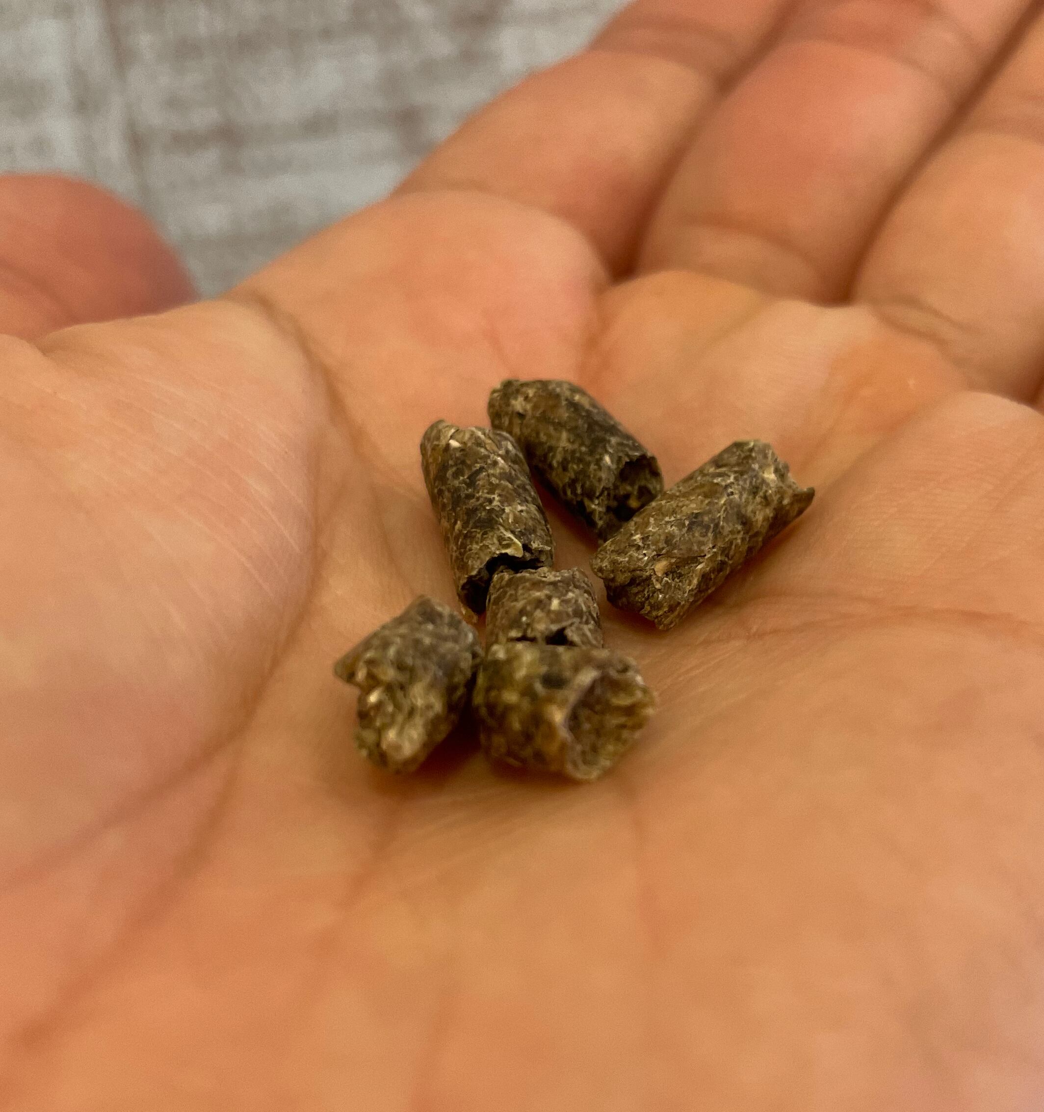 甜菜・サトウダイコンから糖分を絞った後のビートファイバーを固めたマイクロブタ専用おやつです。ビートファイバーは水溶性食物繊維と不溶性食物繊維が豊富に含まれており、ブタさんのお腹の調子を整えます。また、噛みごたえがあり、水分を含むと膨らむため少量でも満足感があります。